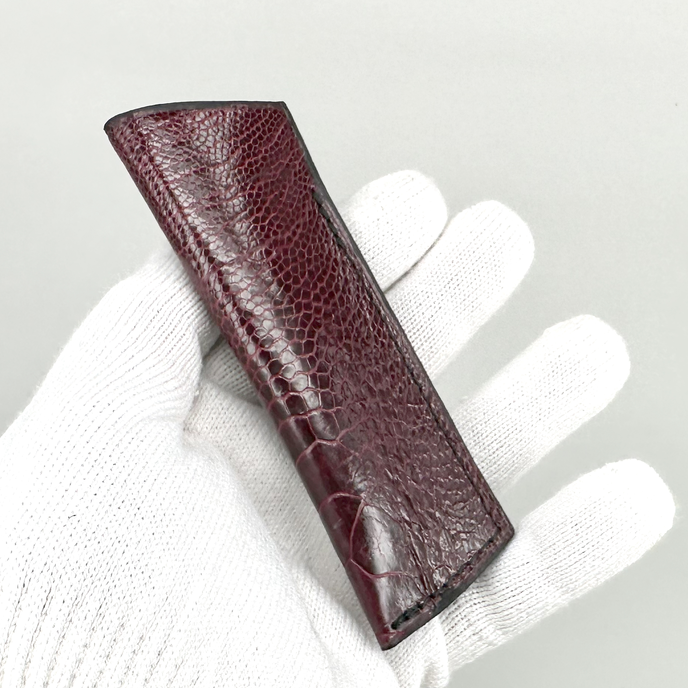 Hand-sewn pouch made from precious ostrich leg leather NEW MODEL size2 CUSTOM. One-off piece suitable for LAGUIOLE PassionFrance® LUXE 11cm and other slim pocket knives with a handle length of 11cm. The item shown in the photo will be delivered.