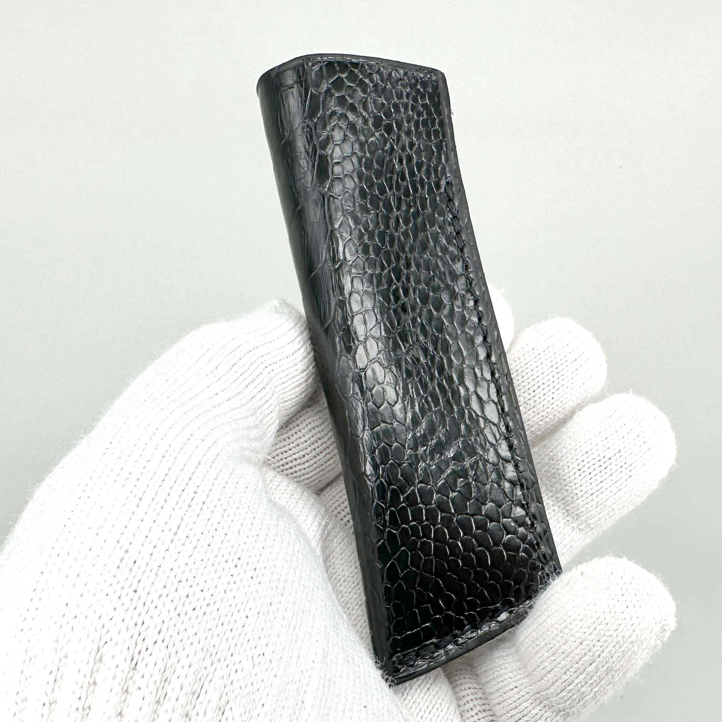 Hand-sewn pouch made from precious ostrich leg leather NEW MODEL size3 CUSTOM. One-off piece suitable for Grand-LAGUIOLE PassionFrance® LUXE 12cm and other pocket knives with a handle length of 12cm. The item shown in the photo will be delivered.