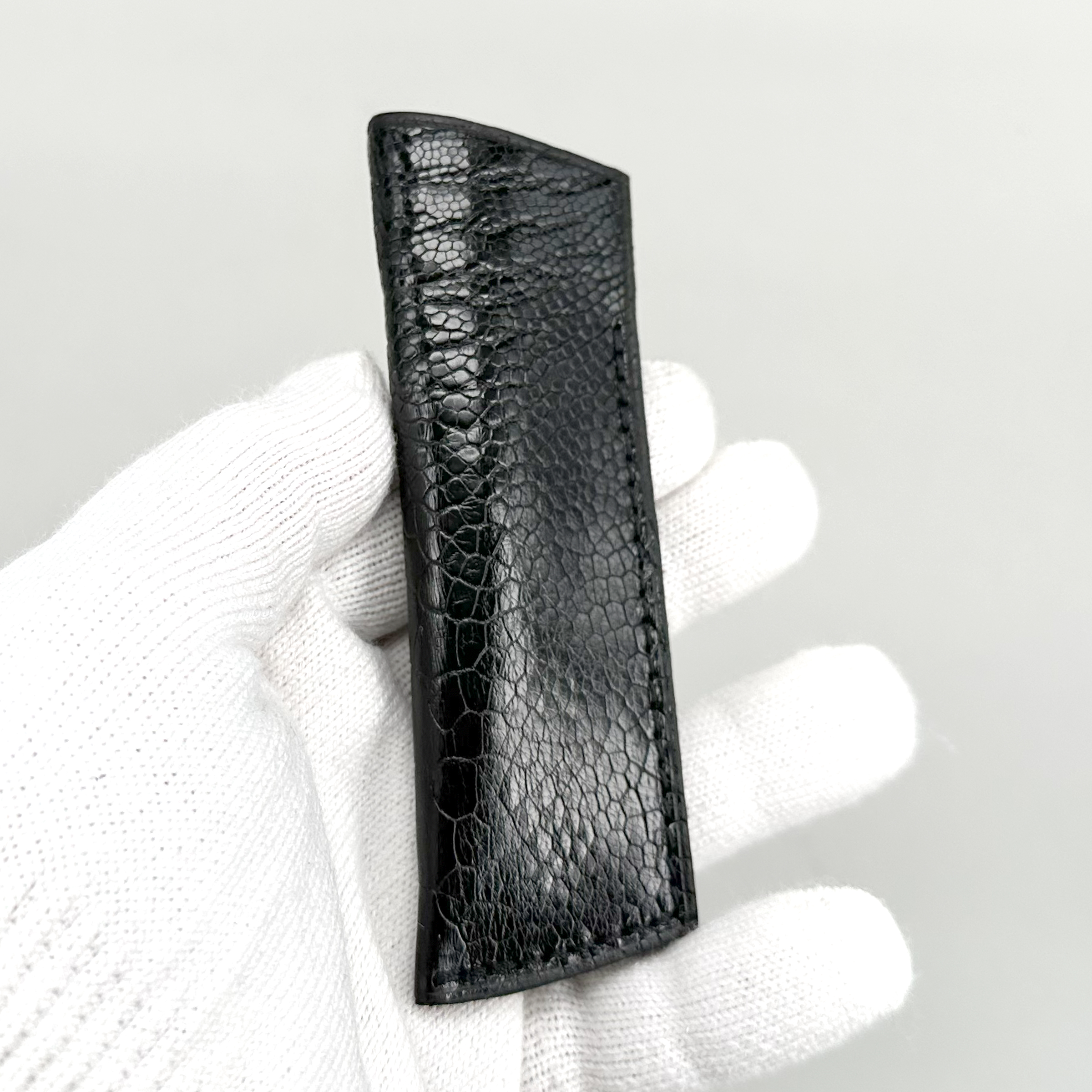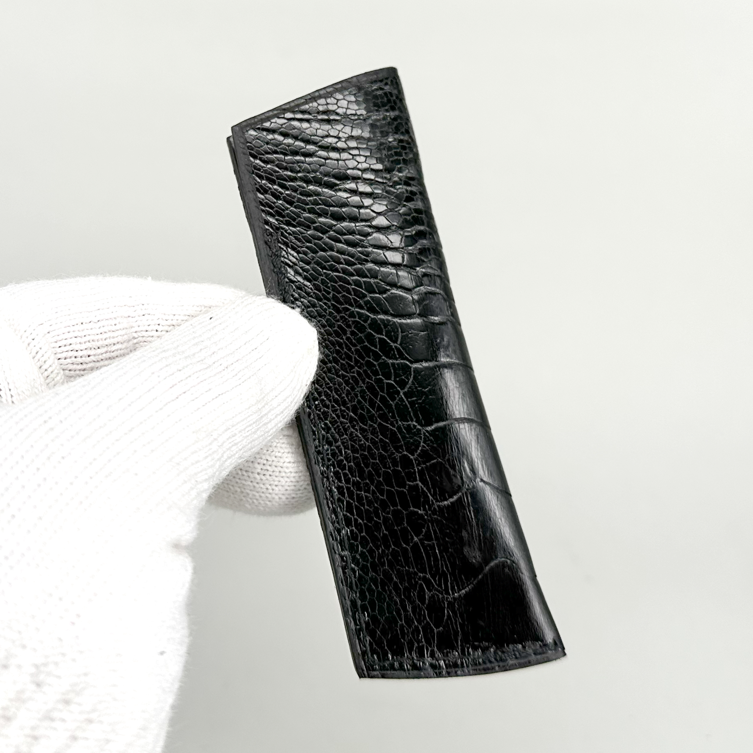 Hand-sewn pouch made from precious ostrich leg leather NEW MODEL size2 CUSTOM. One-off piece suitable for LAGUIOLE PassionFrance® LUXE 11cm and other slim pocket knives with a handle length of 11cm. The item shown in the photo will be delivered.