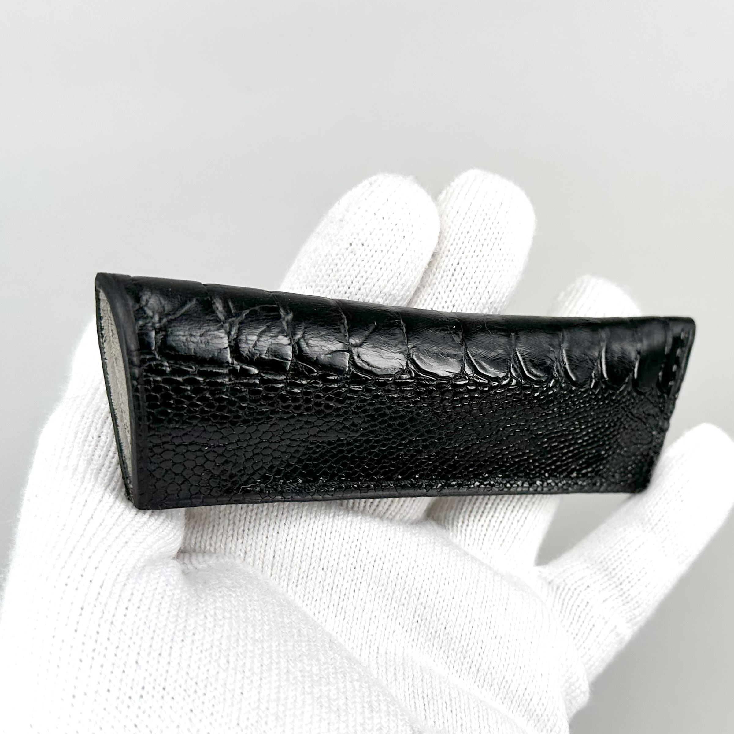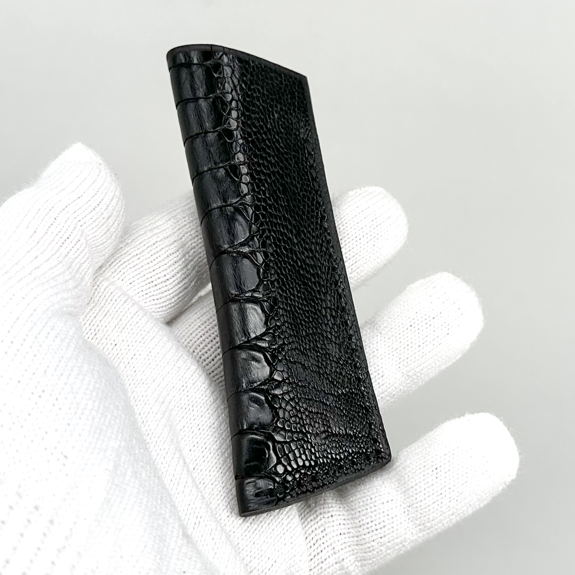 Hand-sewn pouch made from precious ostrich leg leather NEW MODEL size2 CUSTOM. One-off piece suitable for LAGUIOLE PassionFrance® LUXE 11cm and other slim pocket knives with a handle length of 11cm. The item shown in the photo will be delivered.