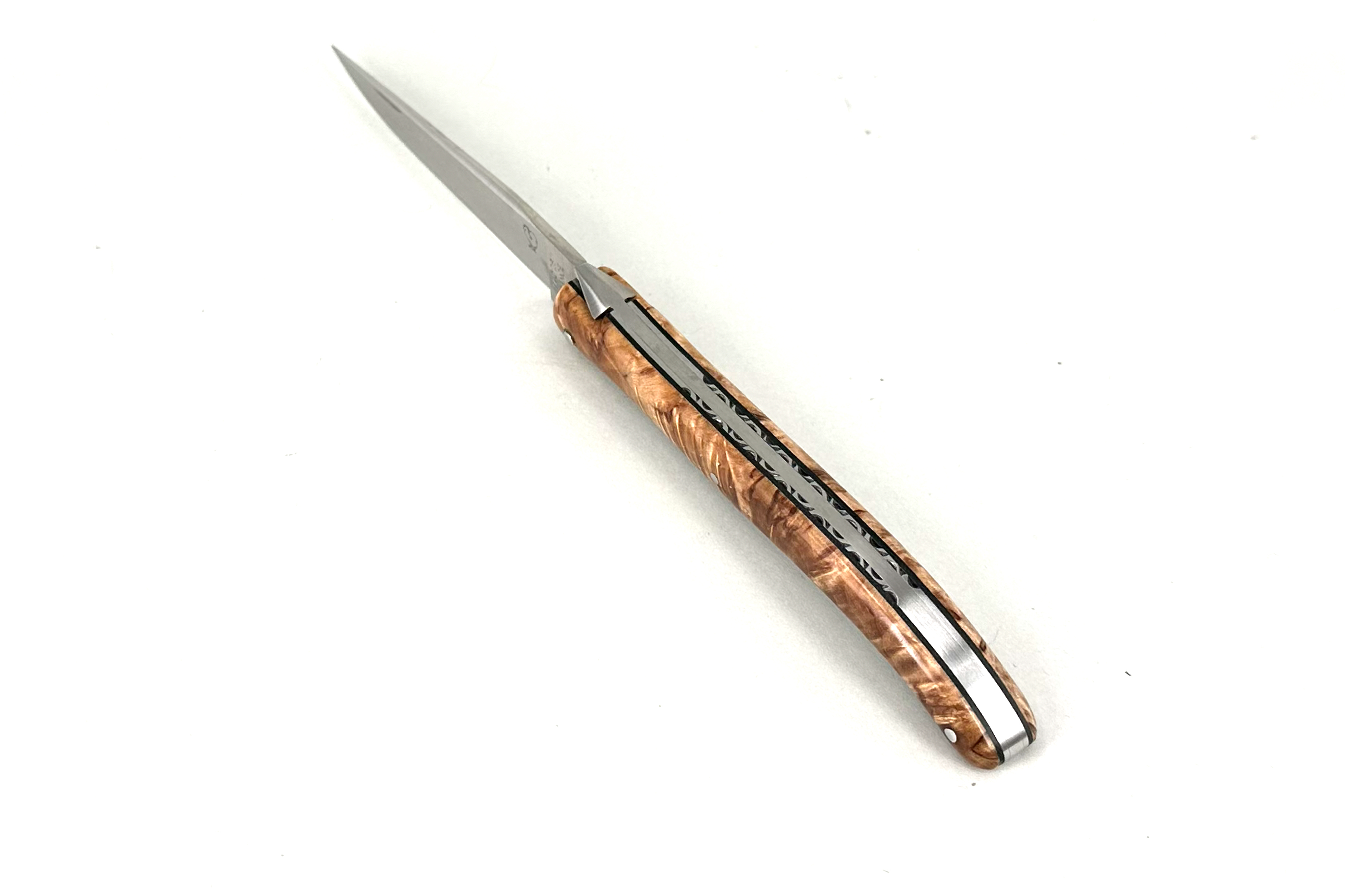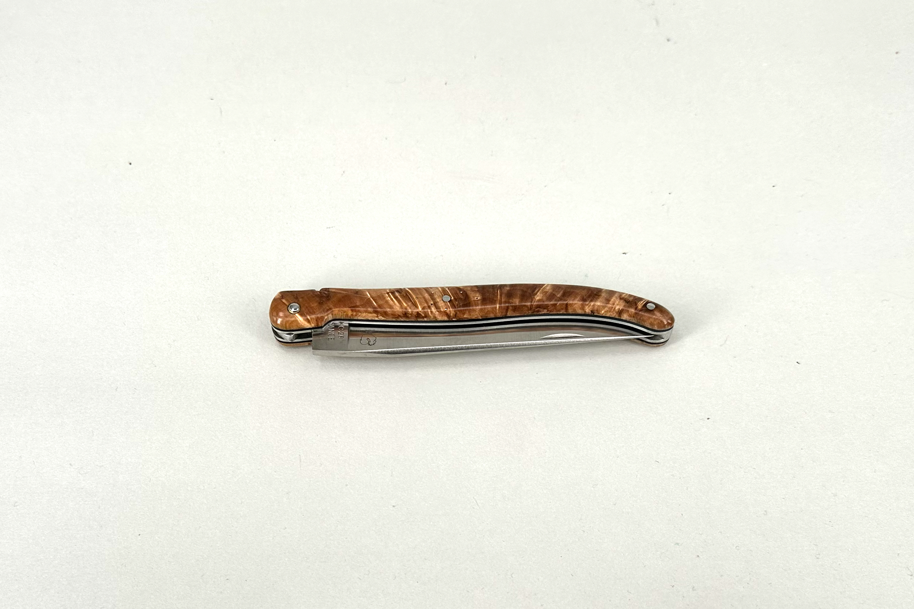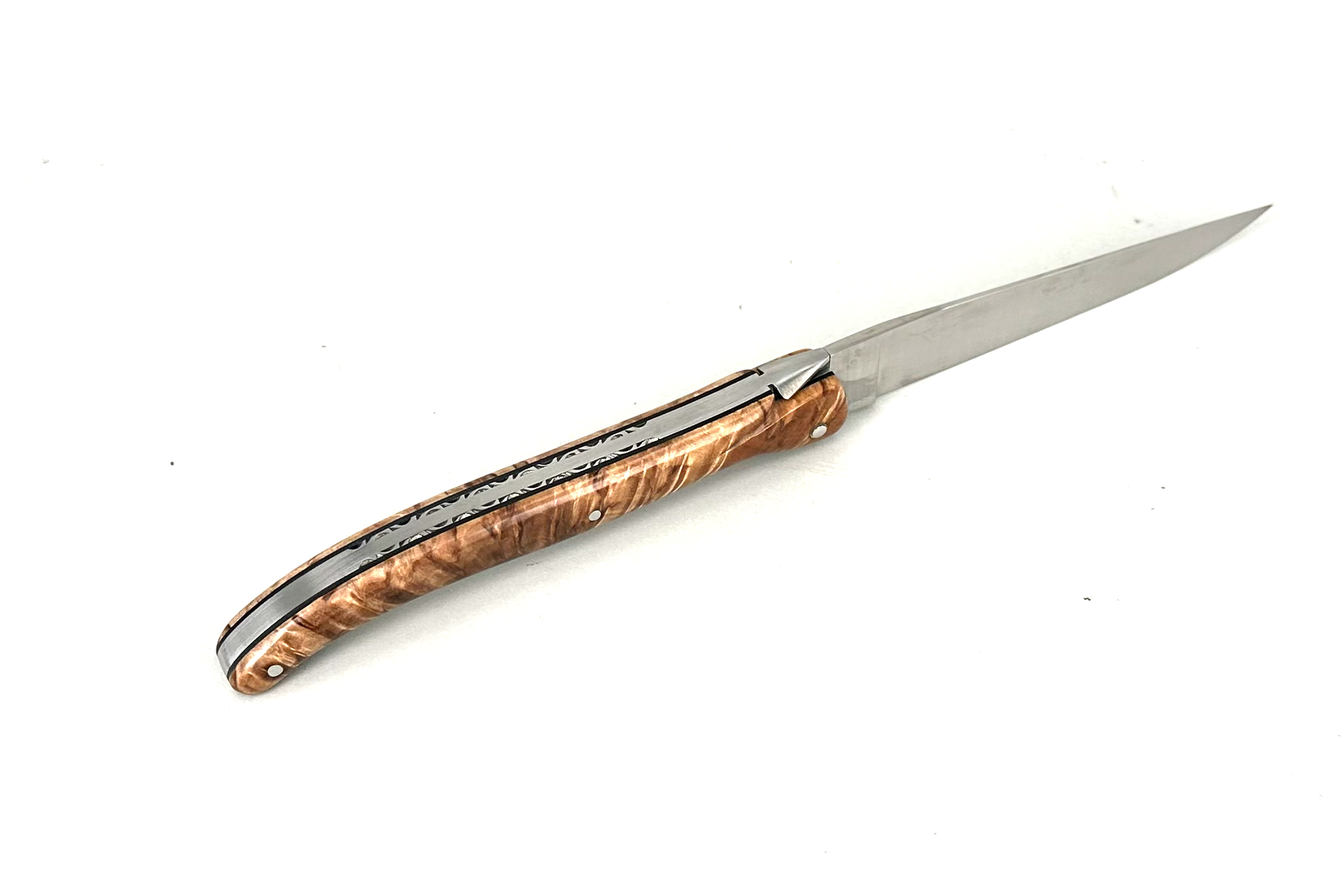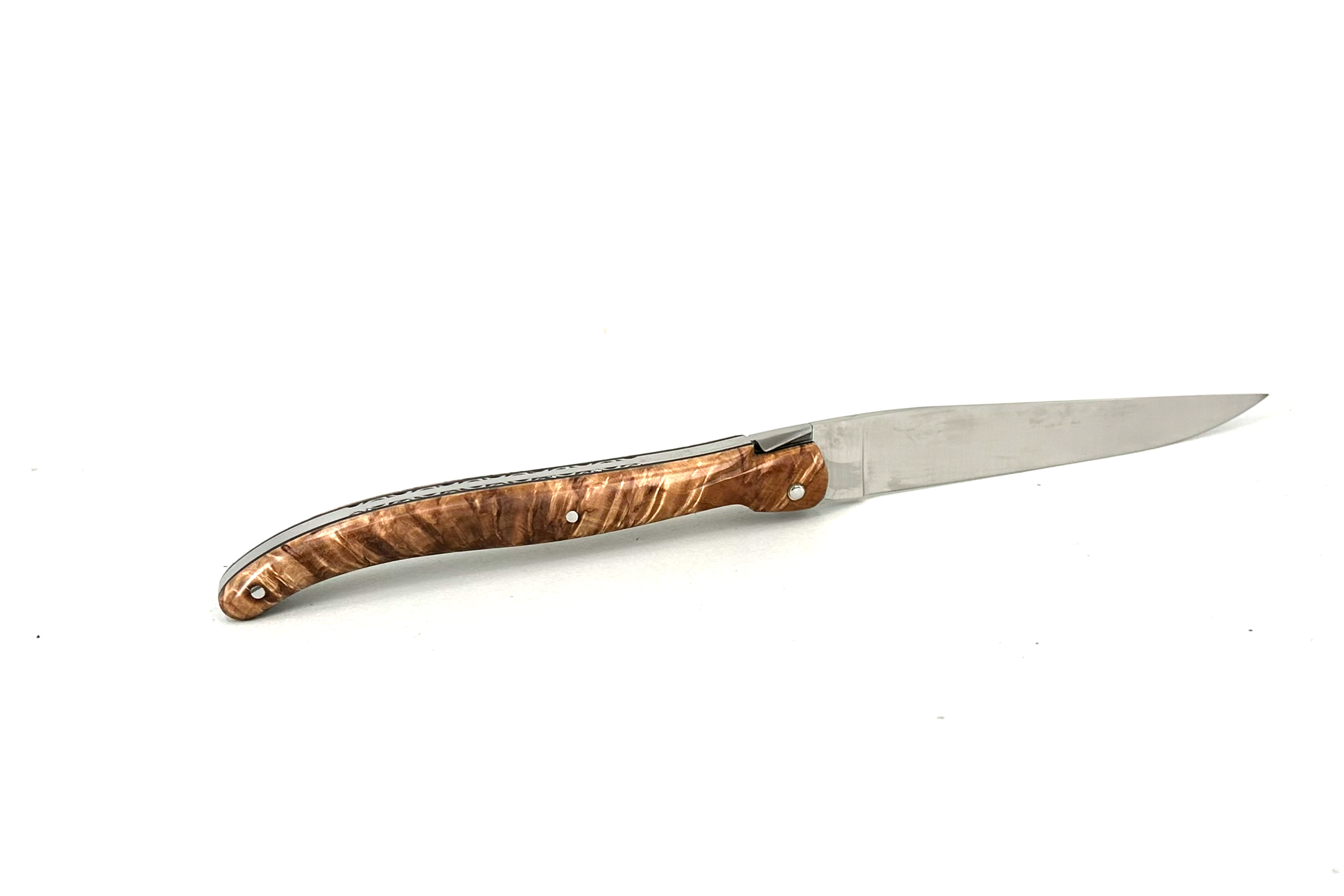 Fact Sheet: Grand-LAGUIOLE PassionFrance® CUSTOM extra large 13cm, forged spring with forged mouche, stabilized birch burl, 14C28