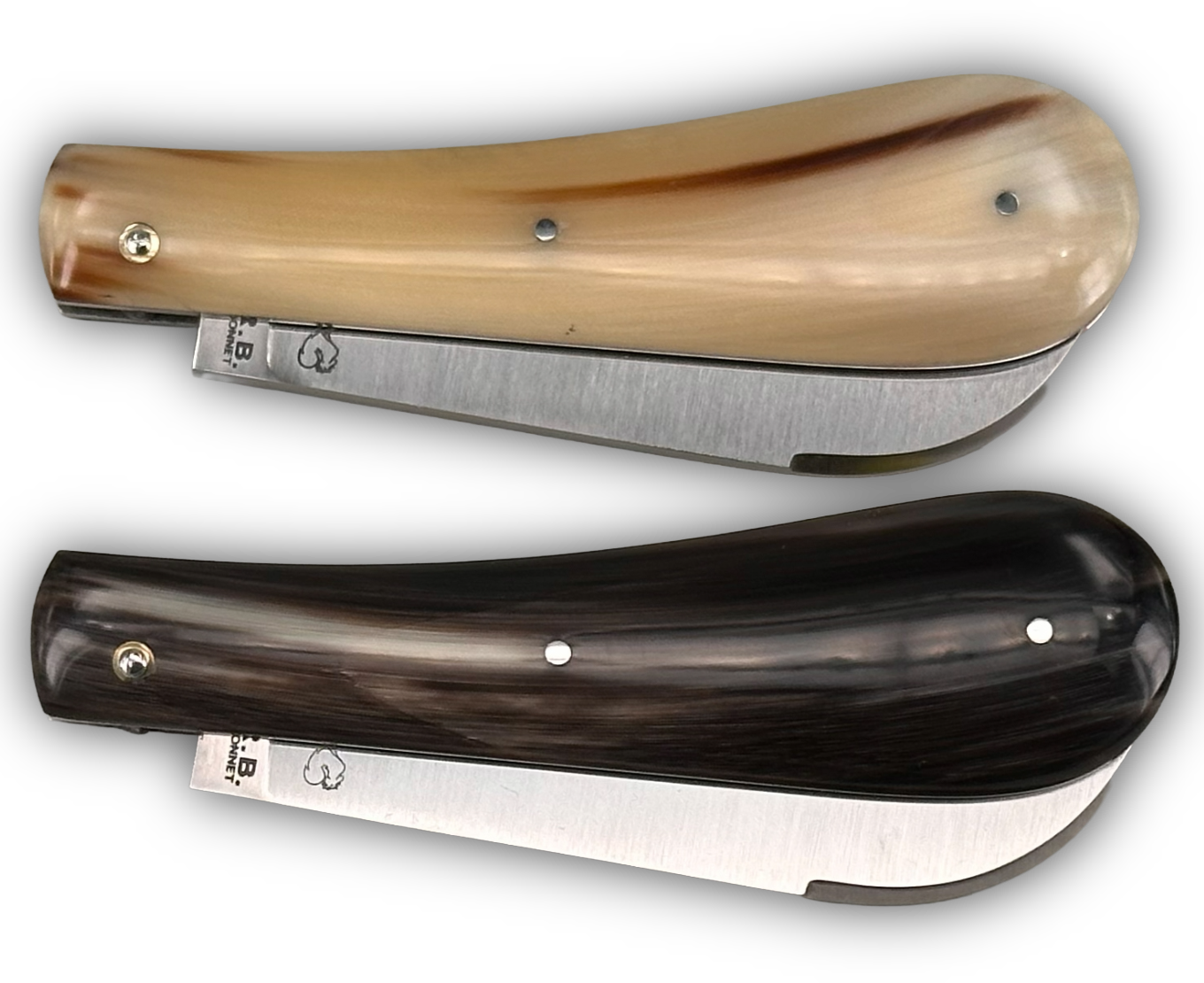 Please note: Unlike the black horn of the water buffalo, blonde horn has an unlimited variety of colours and striations. To ease your selection, we offer a choice between CB-blonde (blonde background with dark striations) and CB-dark (dark background with blonde striations).