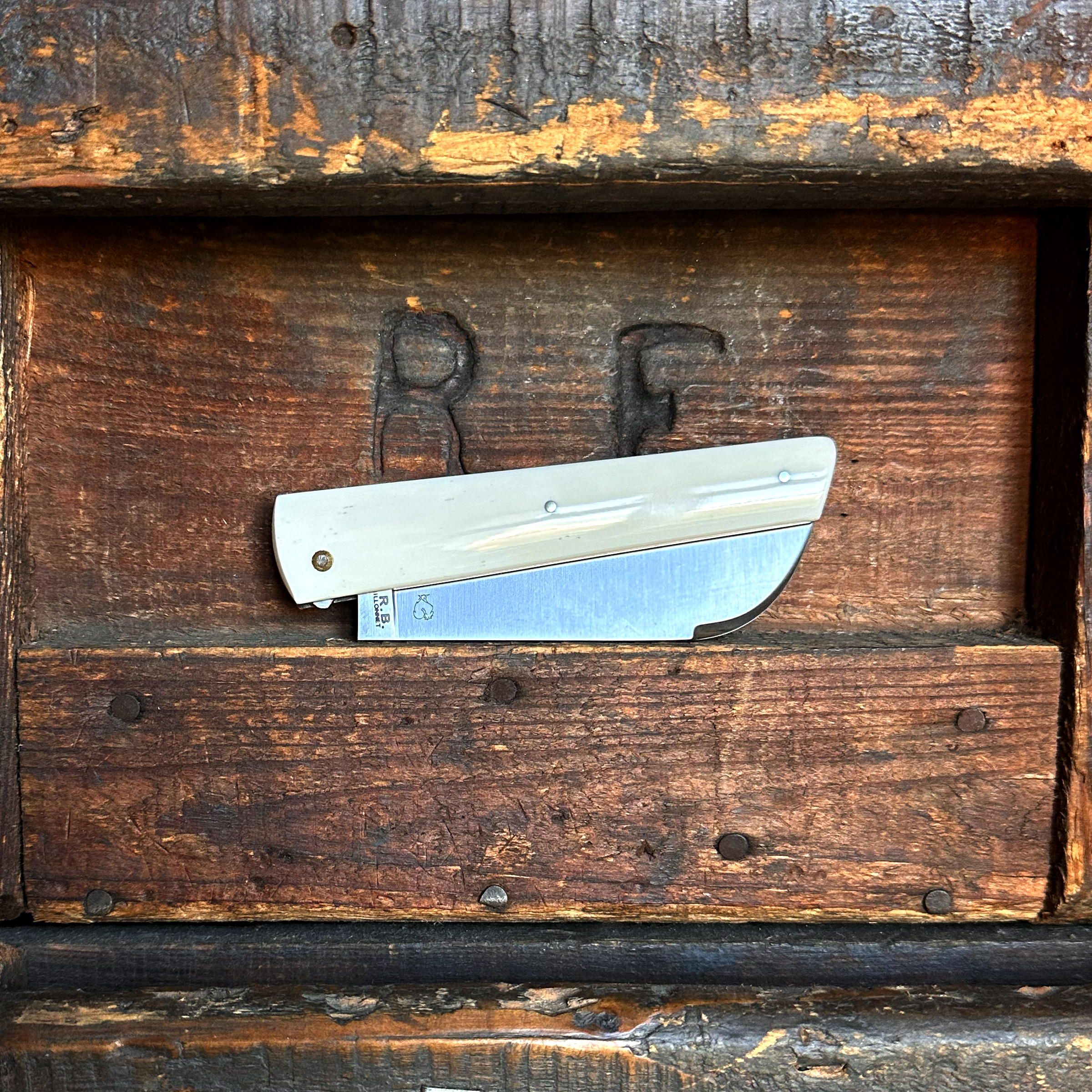 Le SEURRE PassionFrance a été redésigné par le deux fois Meilleur Ouvrier de France Robert Beillonnet. Outre ses lignes pures et élégantes, il dispose de quelques améliorations constructives et fonctionnelles telles qu'une lame avec biseau avant et un casse-goutte dont le contact de la lame avec le ressort est supprimé par rivet. Nous le fabriquons à 100% à la main dans notre atelier à Thiers. Pour la lame choisissez parmi trois aciers différents : 14C28, RWL34 ou XC75 et trois décorations différentes : ressort lisse ou guilloché ou platines décorées. Notre SEURRE est breveté. Signe de son authenticité, il porte sur sa lame le logo de PassionFrance®, le Coq ... savoir plus sur le SEURRE