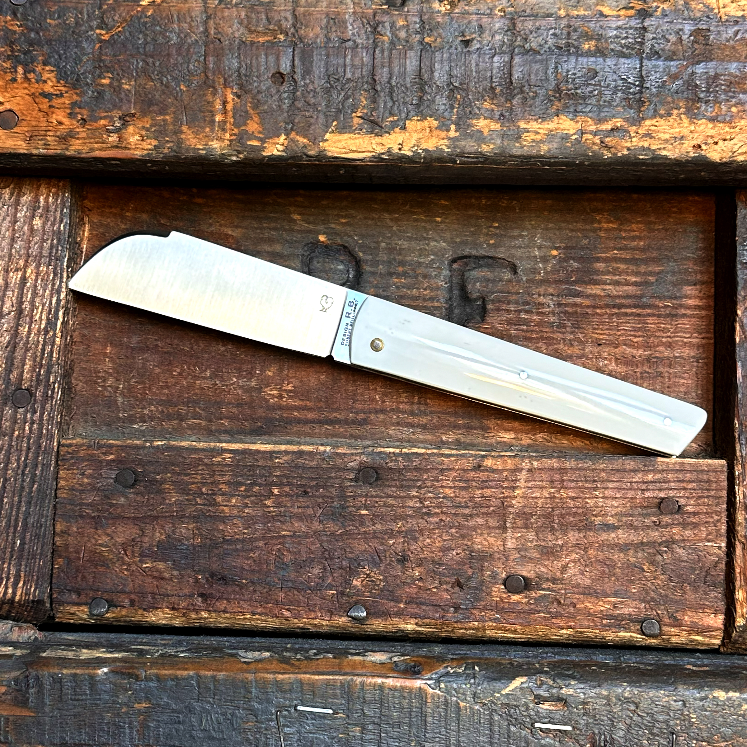 Lame anglaise avec biseau et casse-goutte, contact de la lame avec le ressort supprimé par rivet