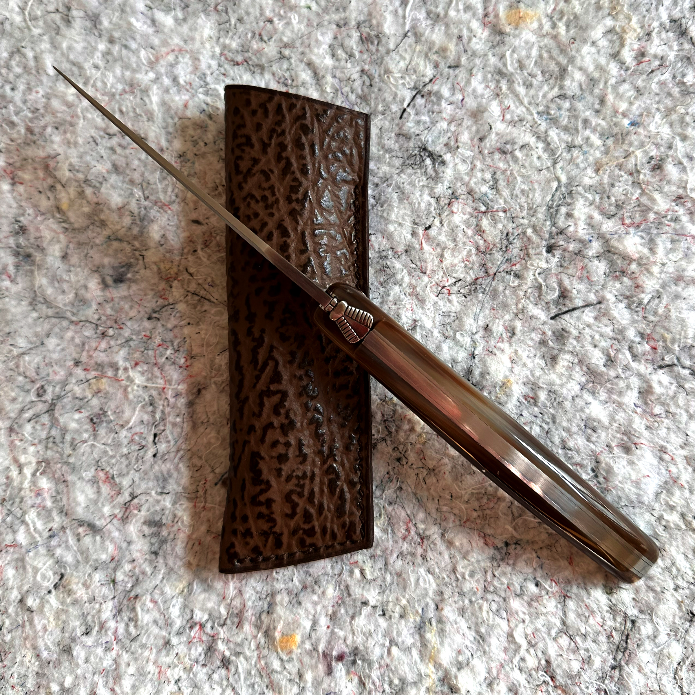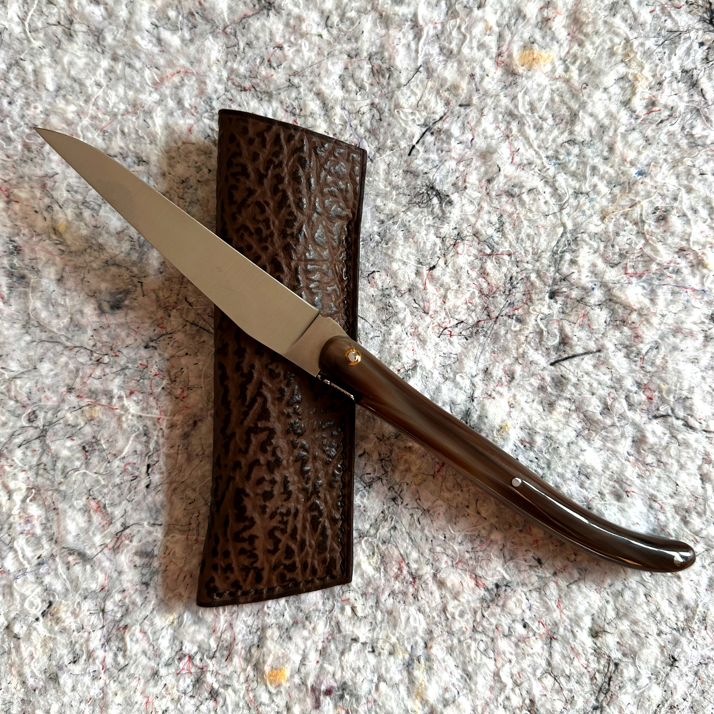 Fact Sheet LAGUIOLE PassionFrance CUSTOM 11cm, Design R.B mof², corne jaspée avec étui de cuir de requin