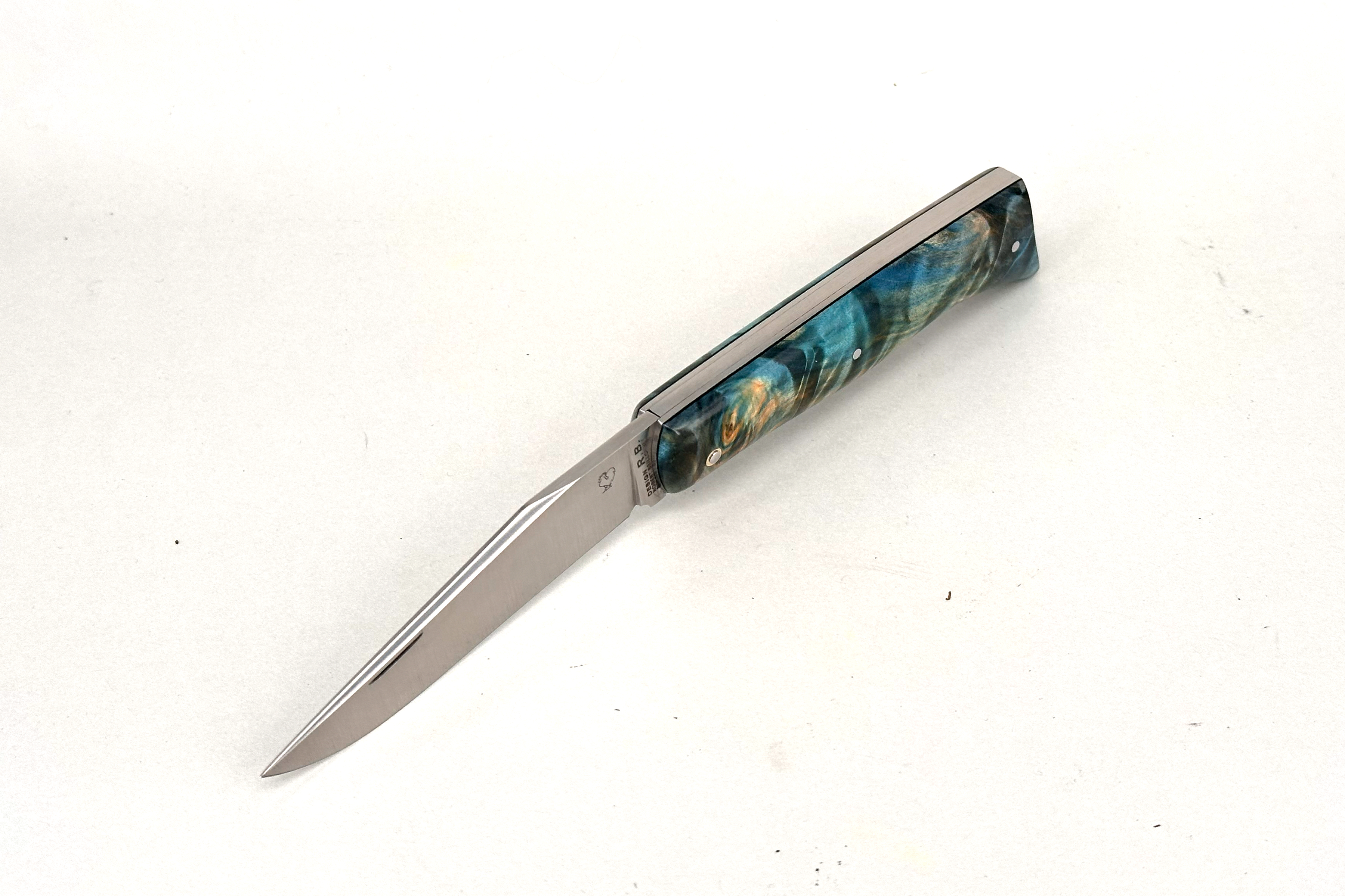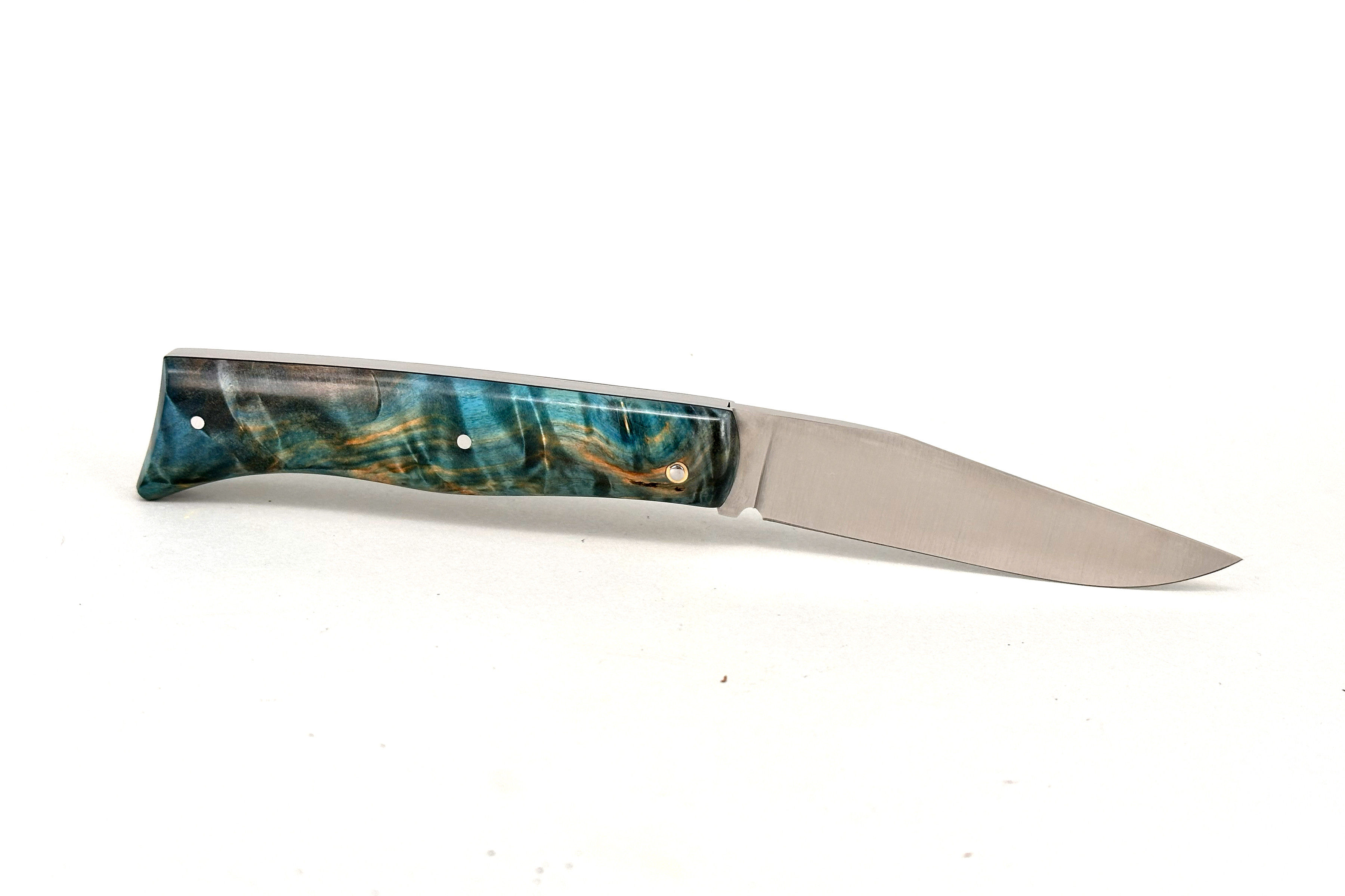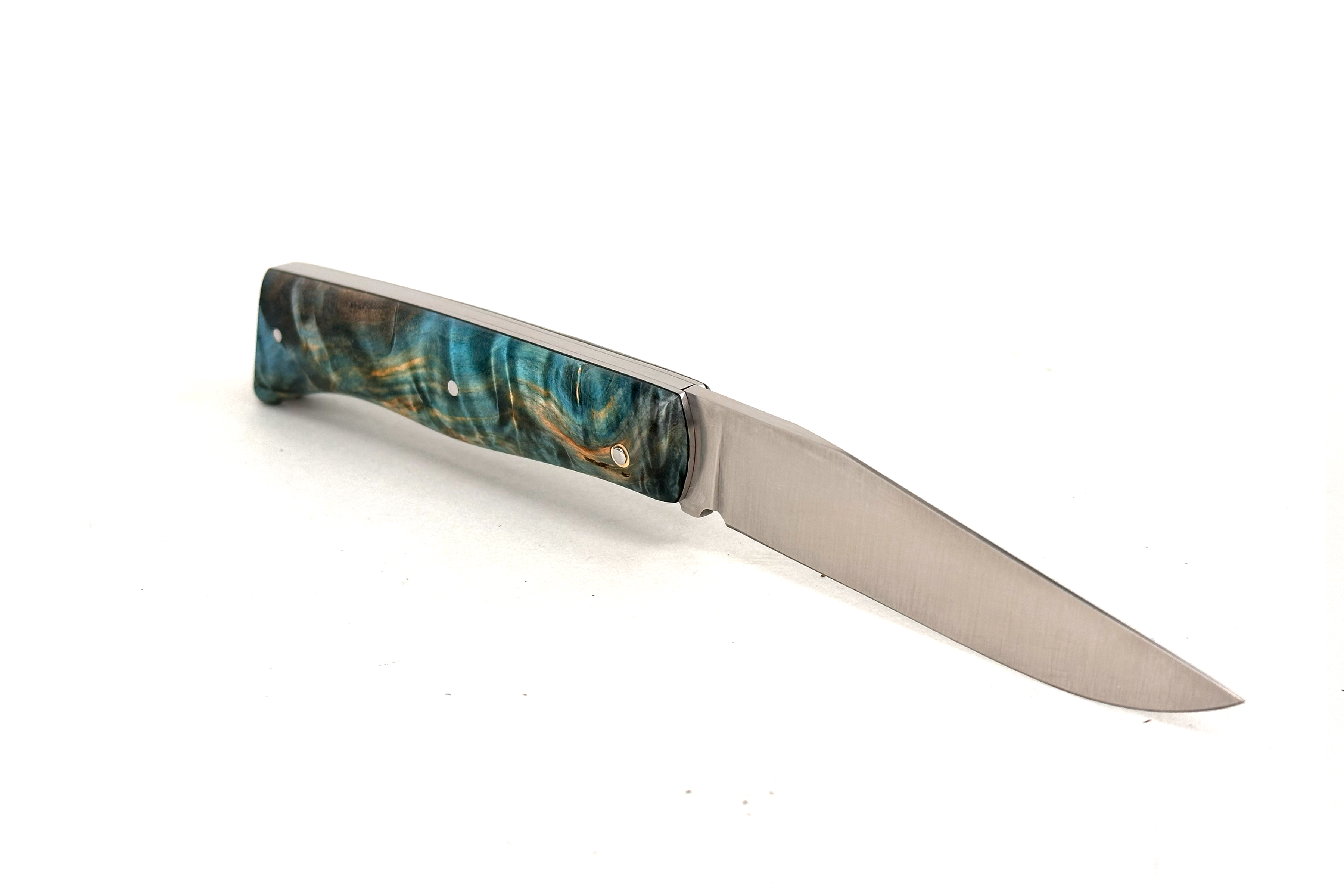 Grand-ALPIN PassionFrance® CUSTOM édition "Marronnier" (stabilisée par NOVAWOOD), dessin du couteau par Robert Beillonnet mof2, fabriqué dans notre atelier à Thiers, 100% fait à main. Le manche est issu d'un lot exclusif de loupe de marronnier dont les veines impressionnantes s'harmonisent parfaitement avec la nature et les paysages montagneux des Alpes savoyardes où l'ALPIN trouve ses origines. Lame en acier de haute performance RWL34 de métallurgie des poudres. Signe de son authenticité, elle porte sur la lame le coq, emblème de PassionFrance® ...  savoir plus sur l'ALPIN