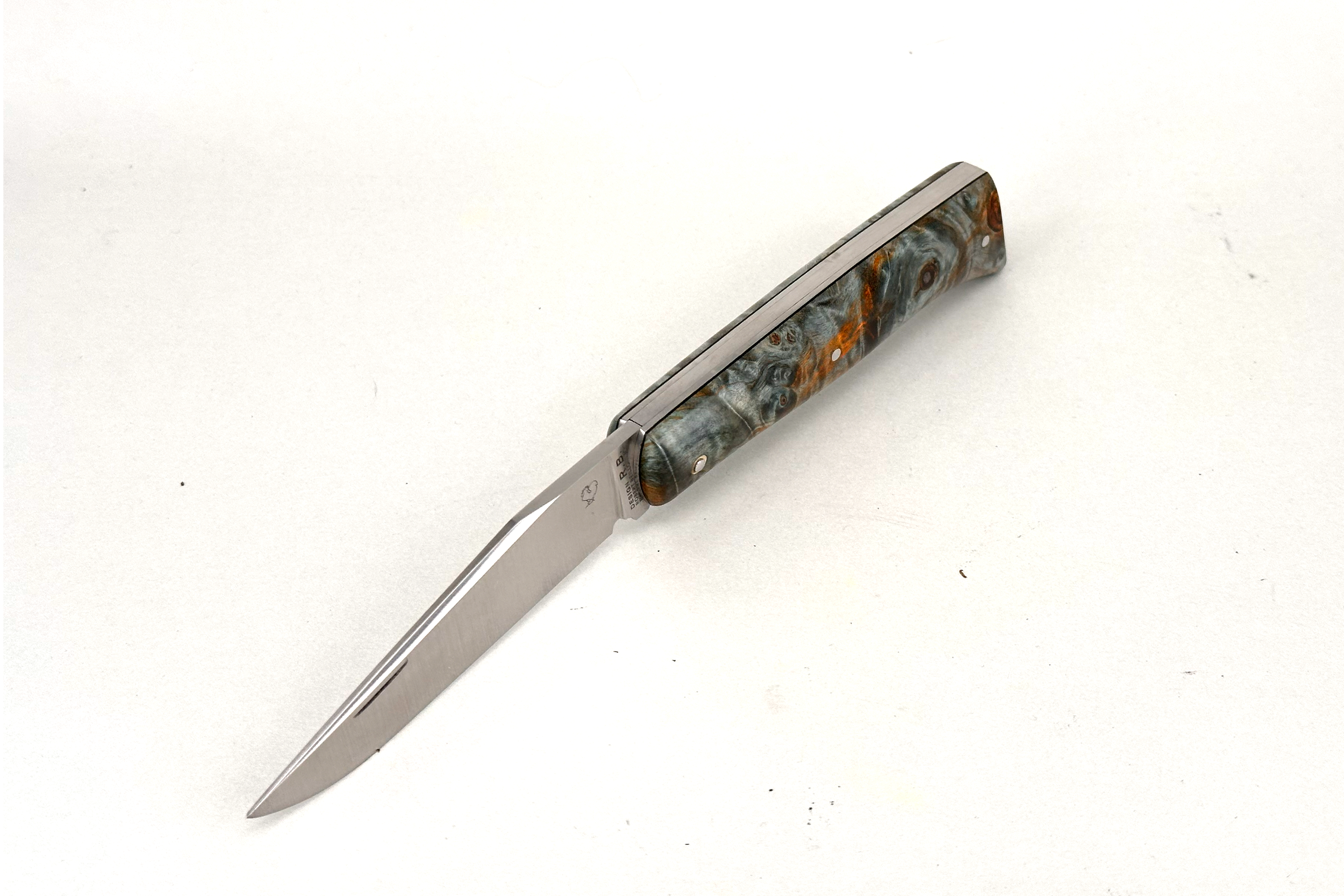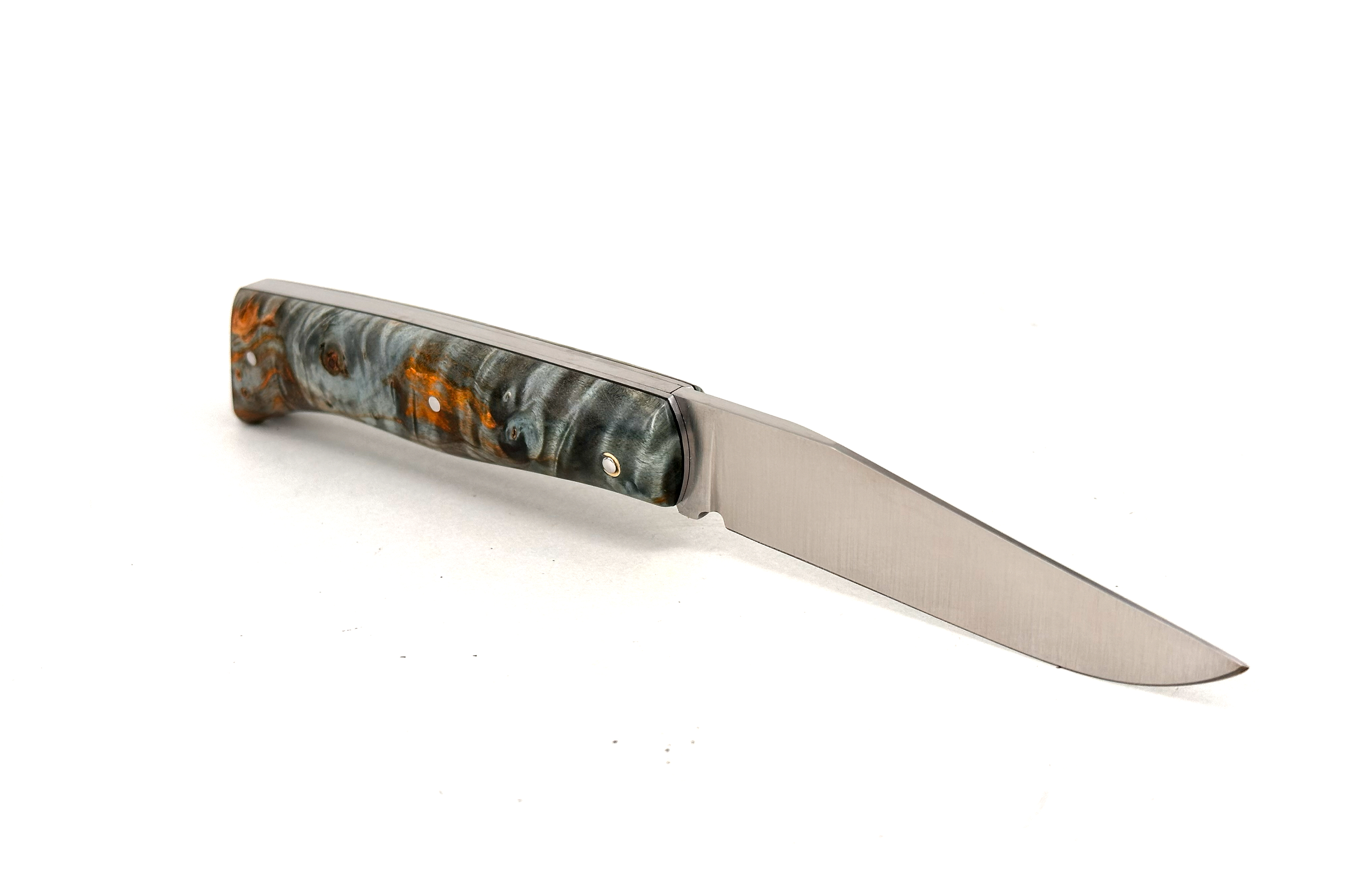 Grand-ALPIN PassionFrance® CUSTOM édition "Marronnier" (stabilisée par NOVAWOOD), dessin du couteau par Robert Beillonnet mof2, fabriqué dans notre atelier à Thiers, 100% fait à main. Le manche est issu d'un lot exclusif de loupe de marronnier dont les veines impressionnantes s'harmonisent parfaitement avec la nature et les paysages montagneux des Alpes savoyardes où l'ALPIN trouve ses origines. Lame en acier de haute performance RWL34 de métallurgie des poudres. Signe de son authenticité, elle porte sur la lame le coq, emblème de PassionFrance® ... savoir plus sur l'ALPIN