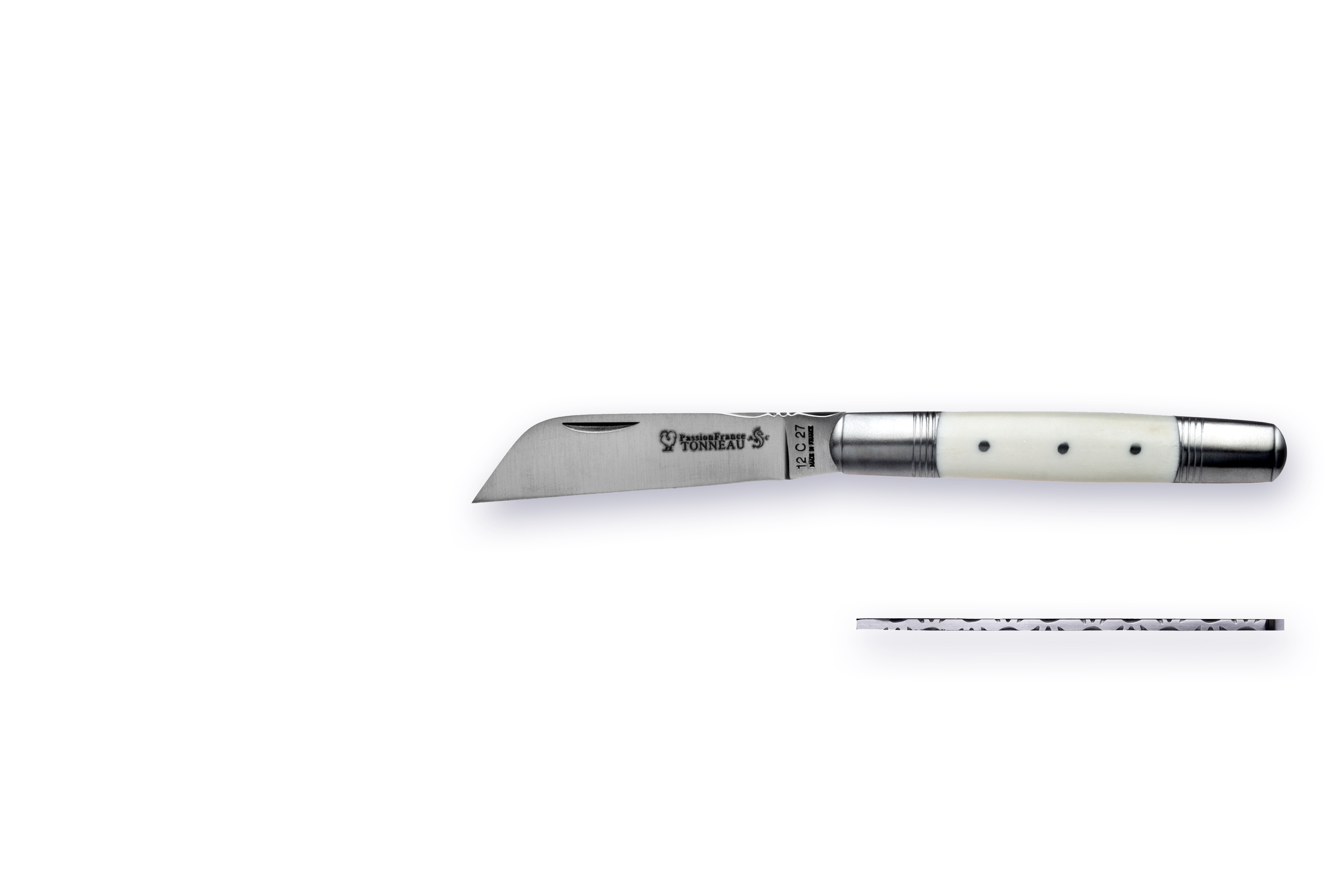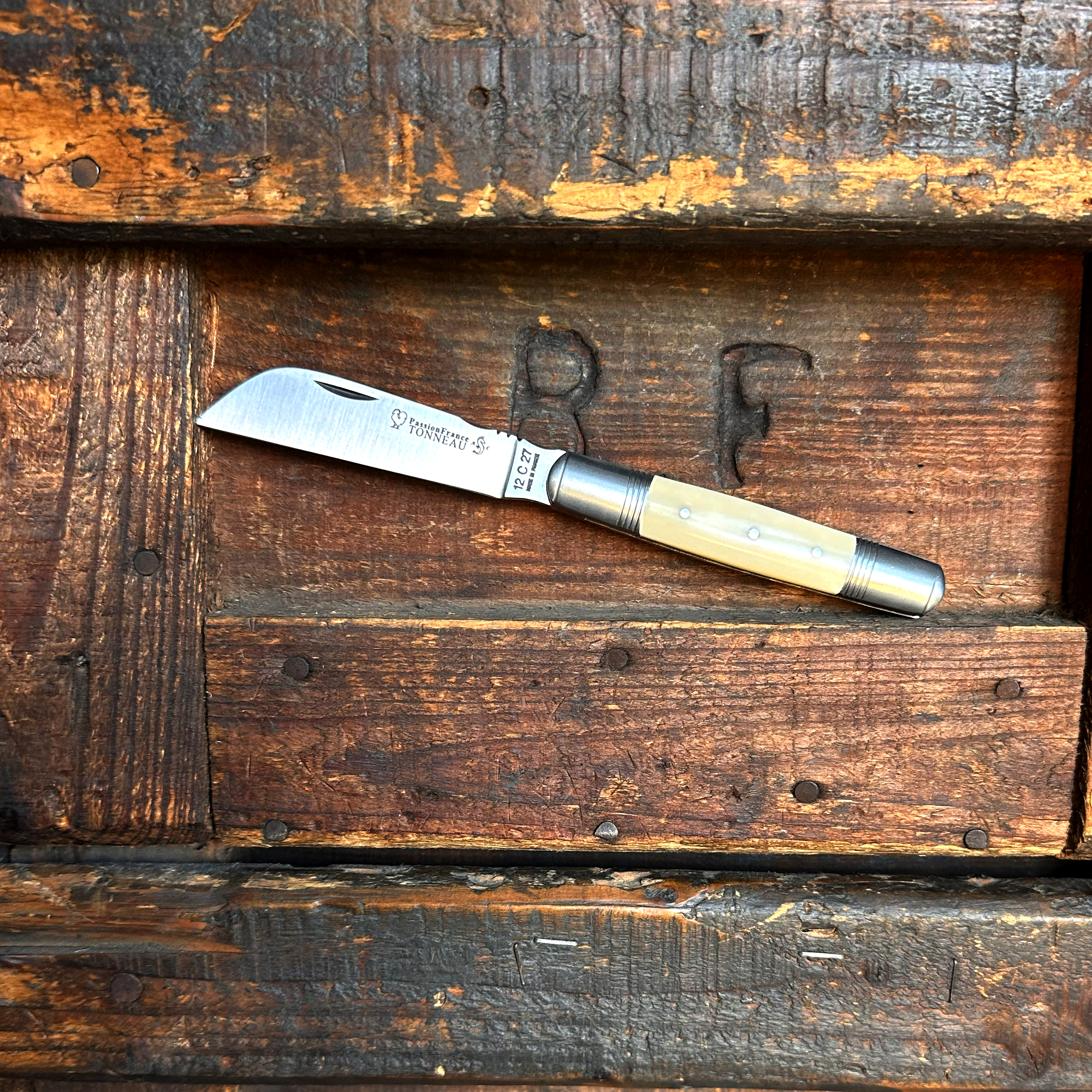 TONNEAU, schön verarbeitete Taschenmesser in traditioneller Form, mit individueller Verzierung von Hand und Griffen aus ausgesuchten, hochwertigen Materialien und Inox-Klingen aus SANDVIK 12C27. Sie entstehen in der Traditionsmanufaktur ARTO in Thiers. Als Zeichen ihrer Echtheit tragen sie neben der Marke der Schmiede das Wappen von PassionFrance®, den Coq. ... mehr über TONNEAU