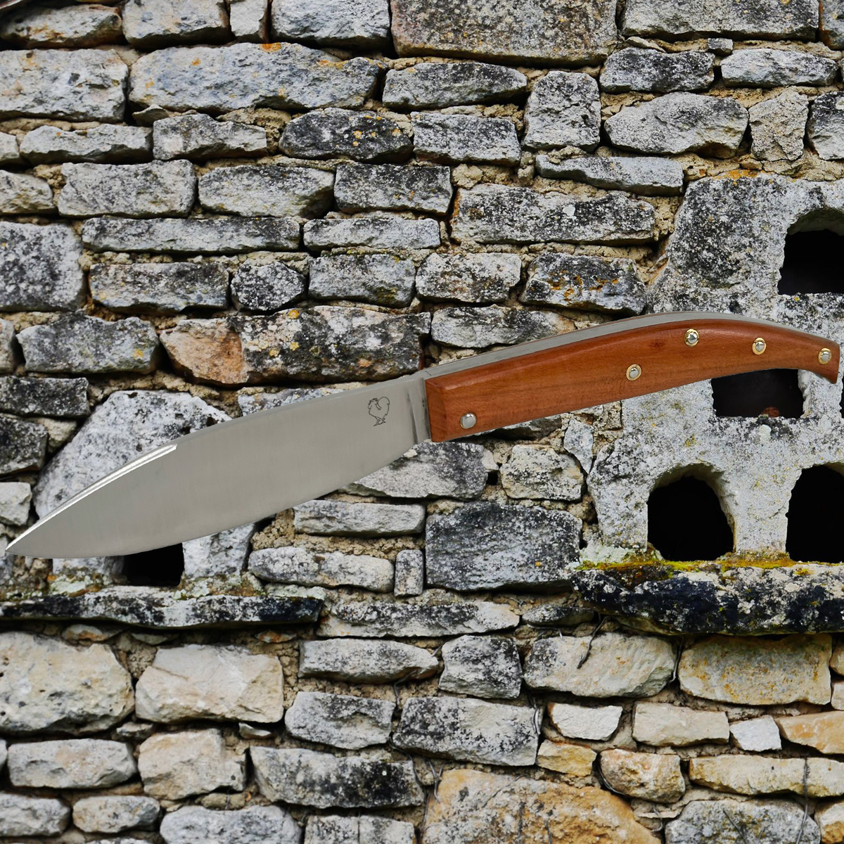 Das SAINT-AMANS steht für das Aquitaine, Südfrankreich, die Region "Entre-Deux-Mers " und das Baskenland. Der typische Griff, die Salbeiblattklinge und die 10 massiven Messingrosetten mit gerundeten Nietköpfen charakterisieren das Messer. Die Klinge ist aufschlagfrei und verfügt über eine Rückenfase à l’entablure. Es entsteht zu 100% in unserem Atelier in Frankreich. Auf der Klinge trägt es das Wappen von PassionFrance®, den Coq ... mehr über das SAINT-AMANS