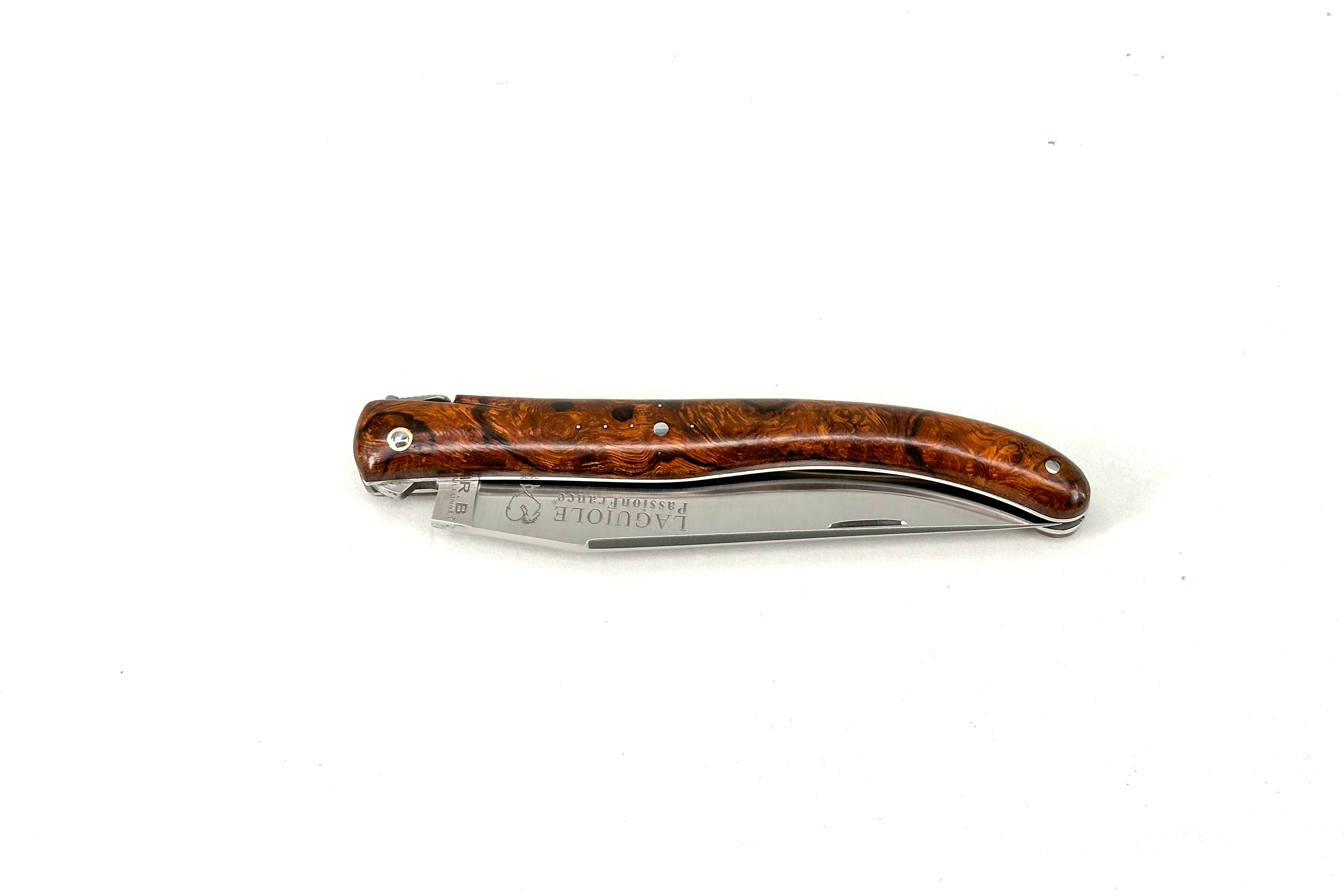 Fact Sheet Grand-LAGUIOLE PassionFrance® CUSTOM mit Korkenzieher, Wüsteneisenholz, handguillochiertes Ressort, Design Robert Beillonnet mof², Klinge 14C28