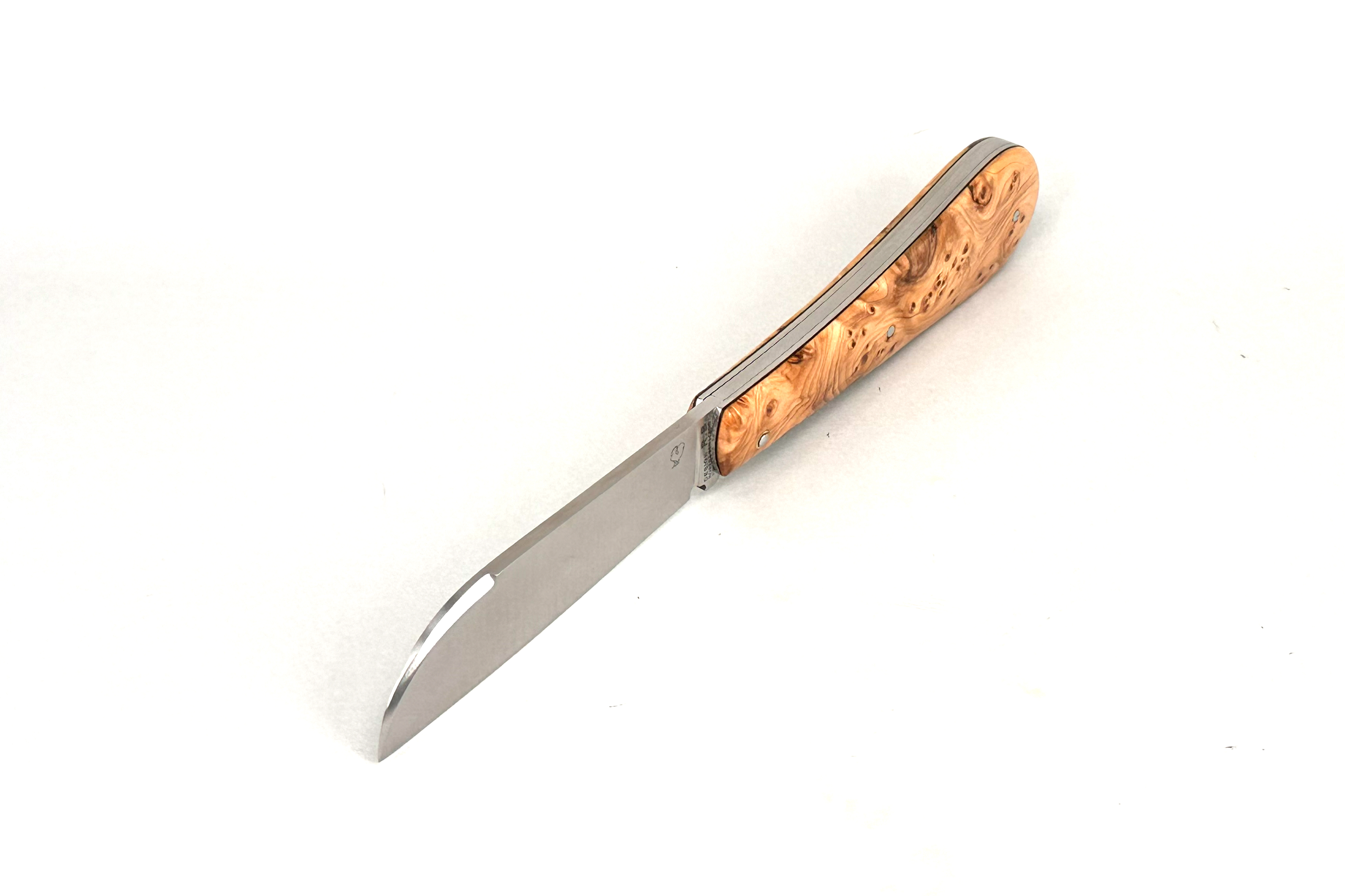 LONDON CUSTOM, Entwurf des zweifachen Meilleur Ouvrier de France Robert Beillonnet (bester Handwerker Frankreichs) für PassionFrance®. Aufschlagfreie Klinge mit Stop-Pin, Fehlschärfe und markanter, frontaler Rückenfase. Klingenstahl RWL34. Unser LONDON ist geschützt. Wir fertigen es zu 100% in Handarbeit in unserem Atelier in Frankreich. Als Zeichen seiner Echtheit trägt es auf der Klinge das Wappen von PassionFrance®, den Coq ... mehr über das LONDON