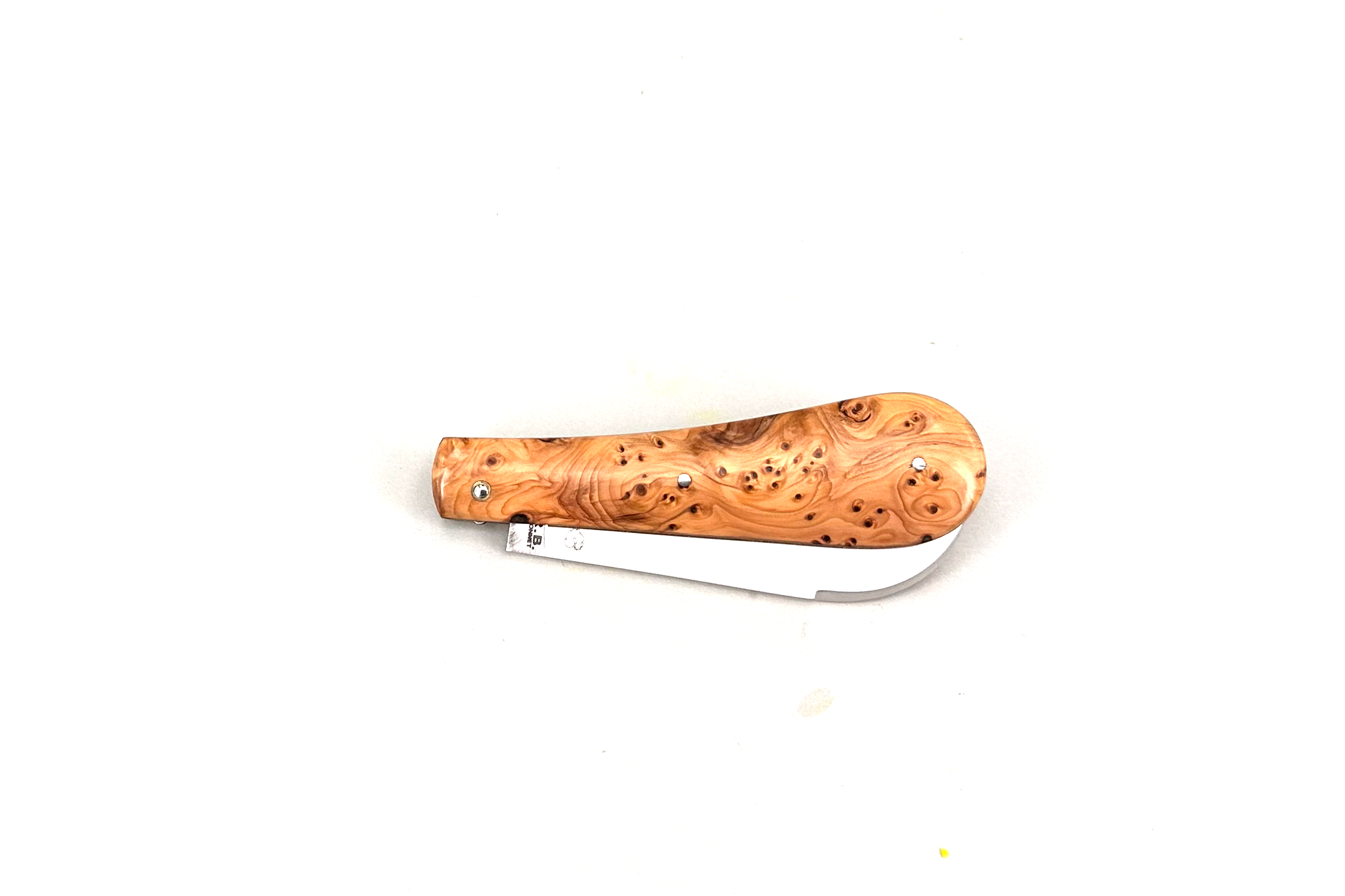 Fact Sheet LONDON PassionFrance LUXE 11cm, Design R.B.mof², stabilisierte Esche Maserknolle mit G10 Unterlage, Klinge RWL34